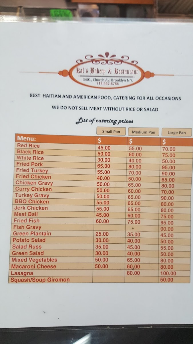 Welcome to Kal's Bakery, a gem nestled in Brooklyn, NY, known for its vibrant Haitian cuisine. Their menu is a celebration of flavor, offering hearty options like Fried Chicken, Jerk Chicken, and Fried Fish that cater to diverse palates. One standout feature is the generous portion sizes—perfect for feeding families without breaking the bank. The Red Rice and delectable Macaroni Cheese are must-tries, consistently receiving praises from locals who rave about the freshness and quality. While the hustle and bustle of the long lines hint at the demand, the fresh Fritay, cooked to order, is worth the wait. With dishes like Meat Balls and Chicken Gravy, Kal's Bakery expertly combines comfort with authenticity. Customers appreciate the warm, homestyle cooking that feels like a taste of home, making every visit a delightful experience. If you’re in the area, Kal's Bakery is a culinary destination you shouldn't miss!